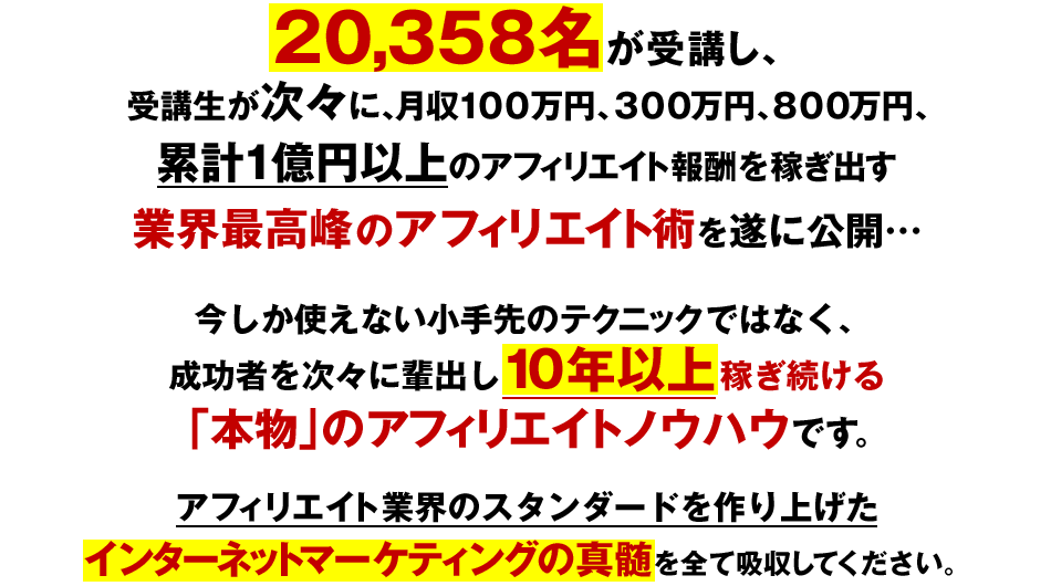 本教材は、私自身が実際にアフィリエイトだけで数千万円稼ぎ出したノウハウで、