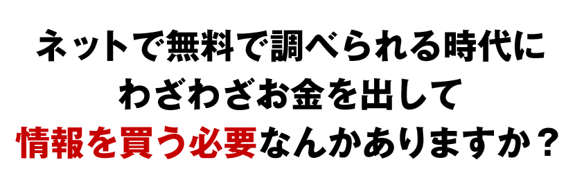 時間そのものよりも仕事は「密度」が重要です。ダラダラとパソコンの前に座っているだけよりも、短時間で集中して作業し、休日などにまとまった作業時間を確保すれば十分実践可能な内容となっております。むしろ有料教材=怪しいというイメージを作ってしまっている「コピペするだけで日給10万円」などの、何もしないで儲かるような情報は存在しません。存在はしませんが、そういった情報をお探しの方は決して購入しないでください。