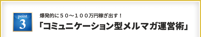 初心者でも「売れる文章」が書けてしまうテクニック。ガツンと稼いでしまうメルマガ専用文章術。文章力が低くても売れてしまう記事戦略。など、様々な文章テクニック、さらには文章力を向上させるトレーニング方法まで解説していますのでご安心ください。義務教育卒業レベルの国語力があれば十分実践可能です。